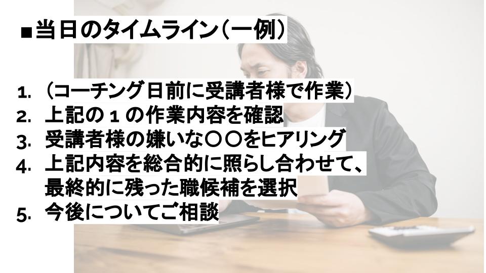 ・あらかじめ送っていただけるご相談内容がわかりやすく細かいほどより深いコーチングができます