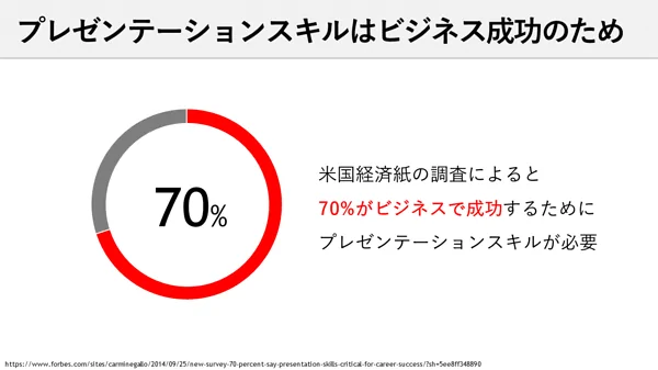 また、アメリカの経済誌の調査では、70%の人が「ビジネスで成功するためにはプレゼンテーションスキルが必要だ」と回答しています。