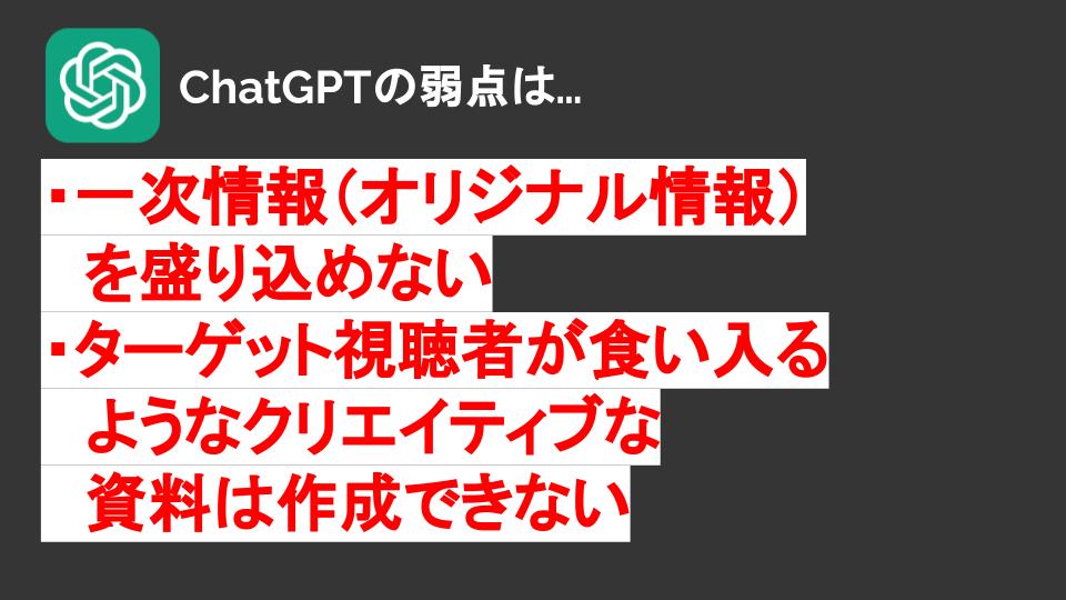 たしかに今のChatGPTなどのAIツールは高機能ですし、手軽にプレゼン資料も作ってくれます。