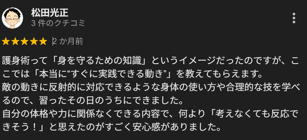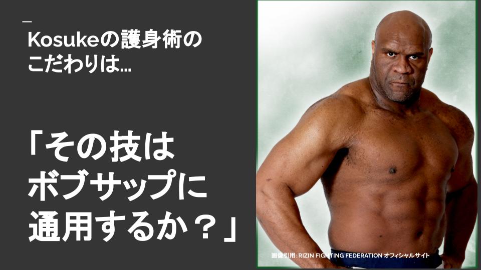むしろ、このコーチングのコンセプトが「どんな人でもボブサップのような巨漢にも通用する護身術」としています。