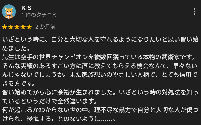 また僕に子どもが生まれました。そのため僕は余計に「子どもを守るという親の務め+子どもにも自分で自分を守る力が大切」だと強く感じました。『自分の身は自分で守り、日本ならではの武道で自分で自分を成長させる教育』をひろげたい想いが、このプログラムを通して実現するため奮闘しています!