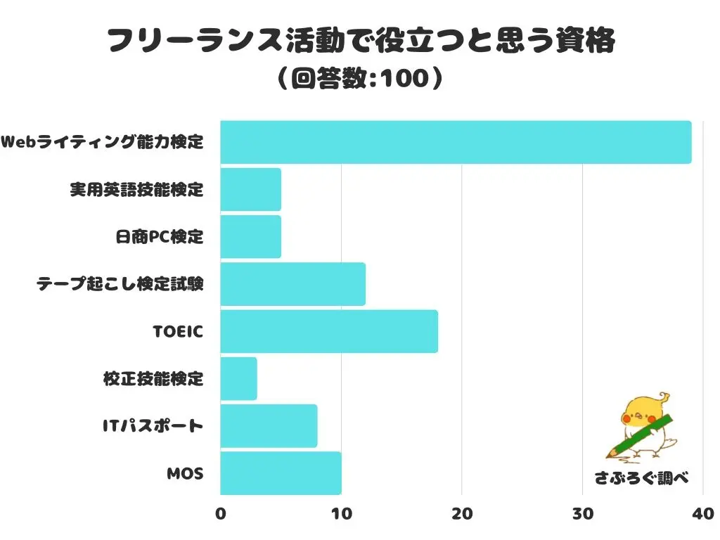 Webライティング検定を受ける受けないは別として、フリーランスで稼ぐ人の多くが「Webライティング技術が役立った」と回答をしていることになります。